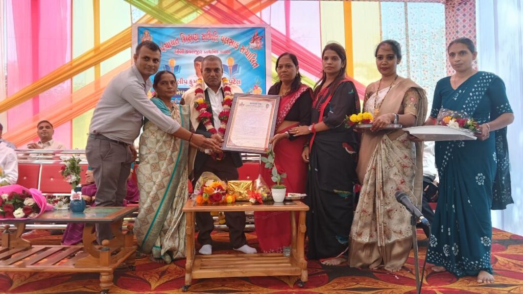 શ્રી પટેલે શિક્ષણ ક્ષેત્ર ઉપરાંત વિજ્ઞાન મેળા, રમત ગમત, તરૂણ મહોત્સવ, ચૂંટણી કામગીરી અને કોરોનાકાળ દરમિયાન આપેલી નિષ્ઠાભરી સેવાઓ માટે સૌએ તેમની પ્રશંસા કરી હતી. શાળાના શિક્ષકો, વિદ્યાર્થીઓ અને ગ્રામજનોની ઉપસ્થિતિમાં શાલ શ્રીફળ અર્પણ કરી તેમને સન્માનિત કરવામાં આવ્યા.